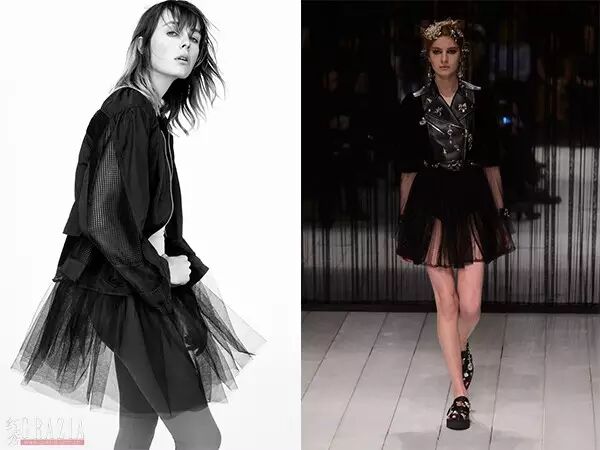 若是不那麽喜歡一身黑,那就想辦法讓整體更具有層次感一些。可以通過疊穿的方式來達到這樣的效果,或者是挑選圖案更加豐富的外套,背一款個性十足的包來搭配黑色紗裙。