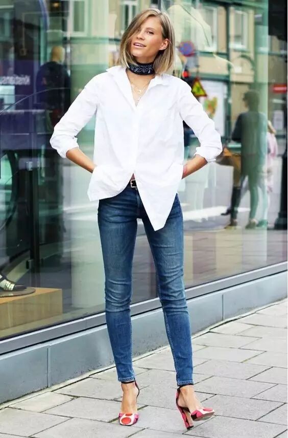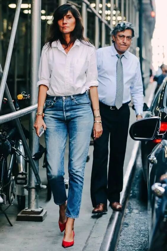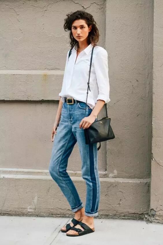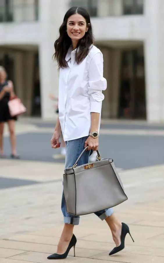 白襯衫+牛仔長褲 白襯衫+牛仔長褲也是最容易穿出簡約高級感的搭配方案。▼