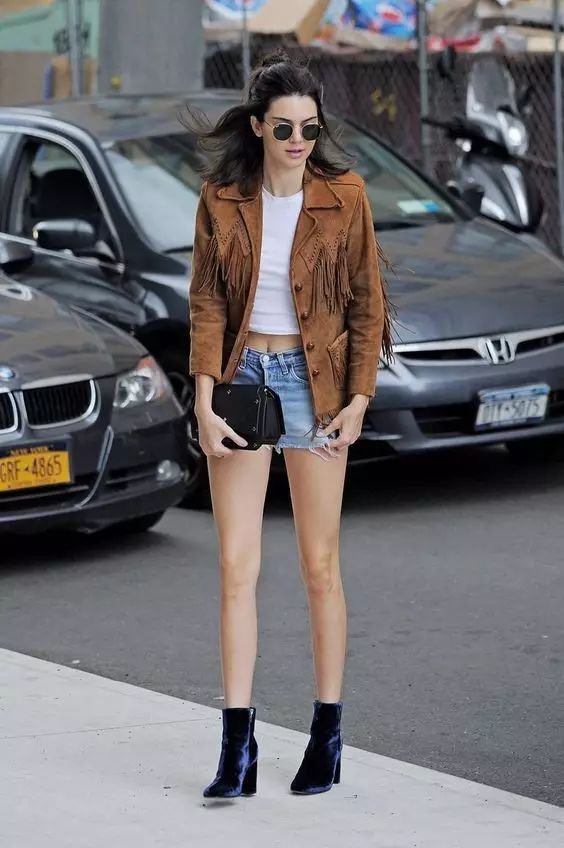 牛仔短褲+長袖小外套 小宋佳和金小妹都是各國時尚穿搭的領軍人物,而她們的早秋裝扮都選擇了工裝外套+牛仔短褲,既凸顯出女性的帥氣有型的一麵,突出修長的雙腿也是羨煞旁人的好身材。▼