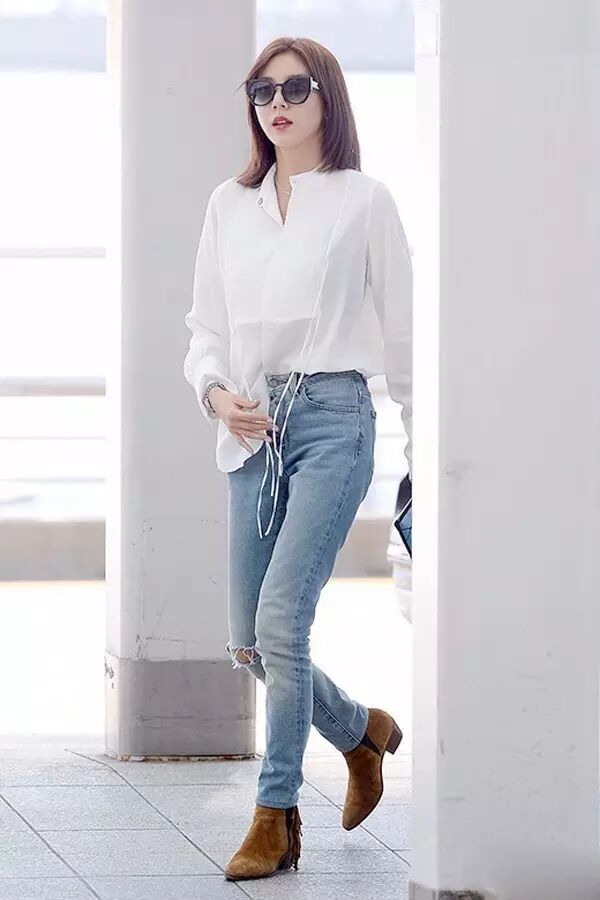 氣質女神高俊熙,用富有浪漫感的襯衫和牛仔褲搭出了時髦的複古氣質,簡約不簡單。▼