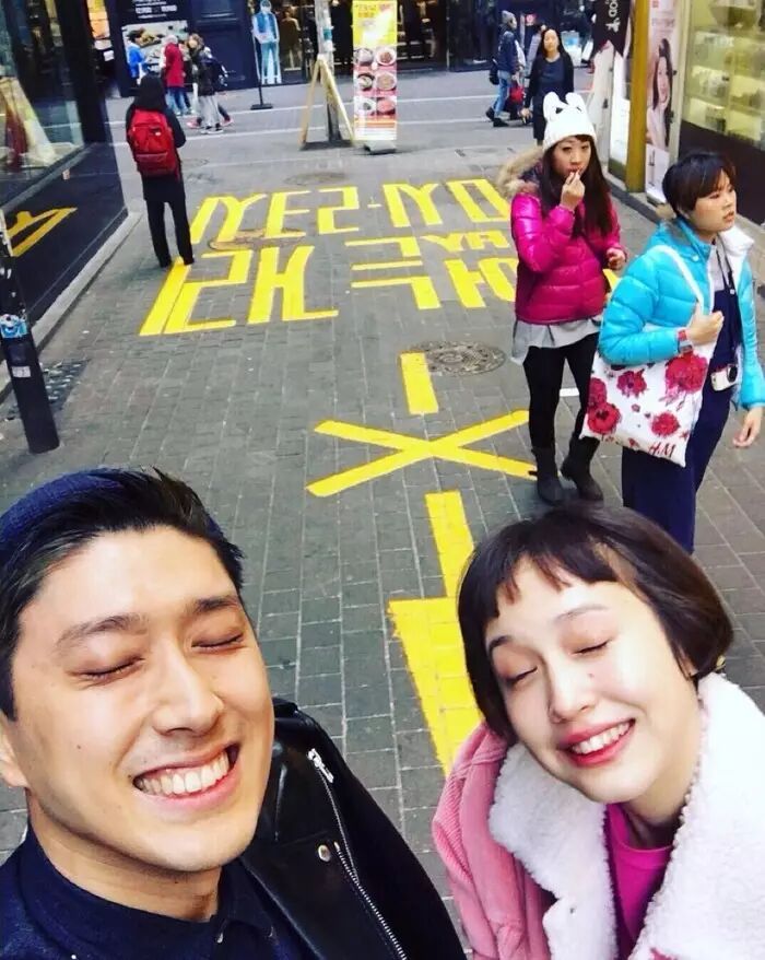 和朋友逛街,這畫風也是夠清奇啊!顏好皮膚好就是任性!
