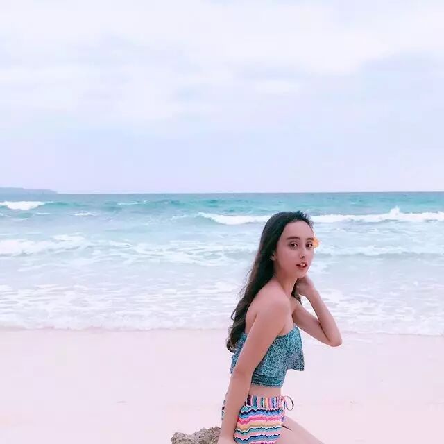 日美混血的妮可,標誌性的大眼睛和櫻桃小嘴,再加上精致的鵝蛋臉,360無死角上鏡。海邊度假照怎麽拍?妮可給你示範一個好身材!