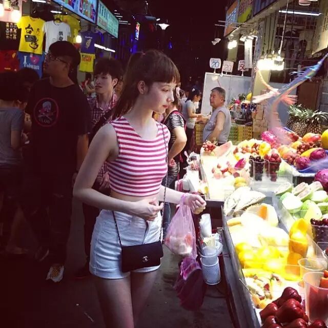 逛集市也是沒忘了秀一波好身材,這從頭到腳的雪白肌簡直可以和閃電相比了!