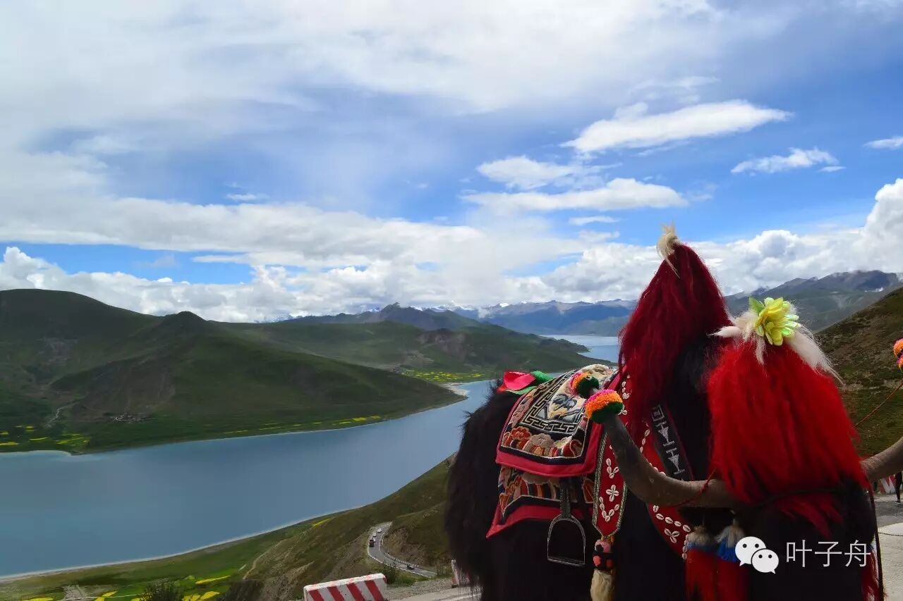 不久,我們來到了羊卓雍措。羊湖果然是美麗的,已在路上顛簸地饑腸轆轆的隊友們還是熱情高漲地將自己和羊湖鎖定到手機裏。這時海拔陡然比拉薩高了一千多米,小魚兒終於挺不住了。大家在離開羊湖的半山腰的小餐館吃飯休息。