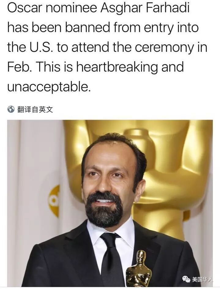 曾憑《一次別離》獲奧斯卡最佳外語片獎,今年憑《推銷員》再度入圍的伊朗導演將因禁令無法出席奧斯卡頒獎禮。