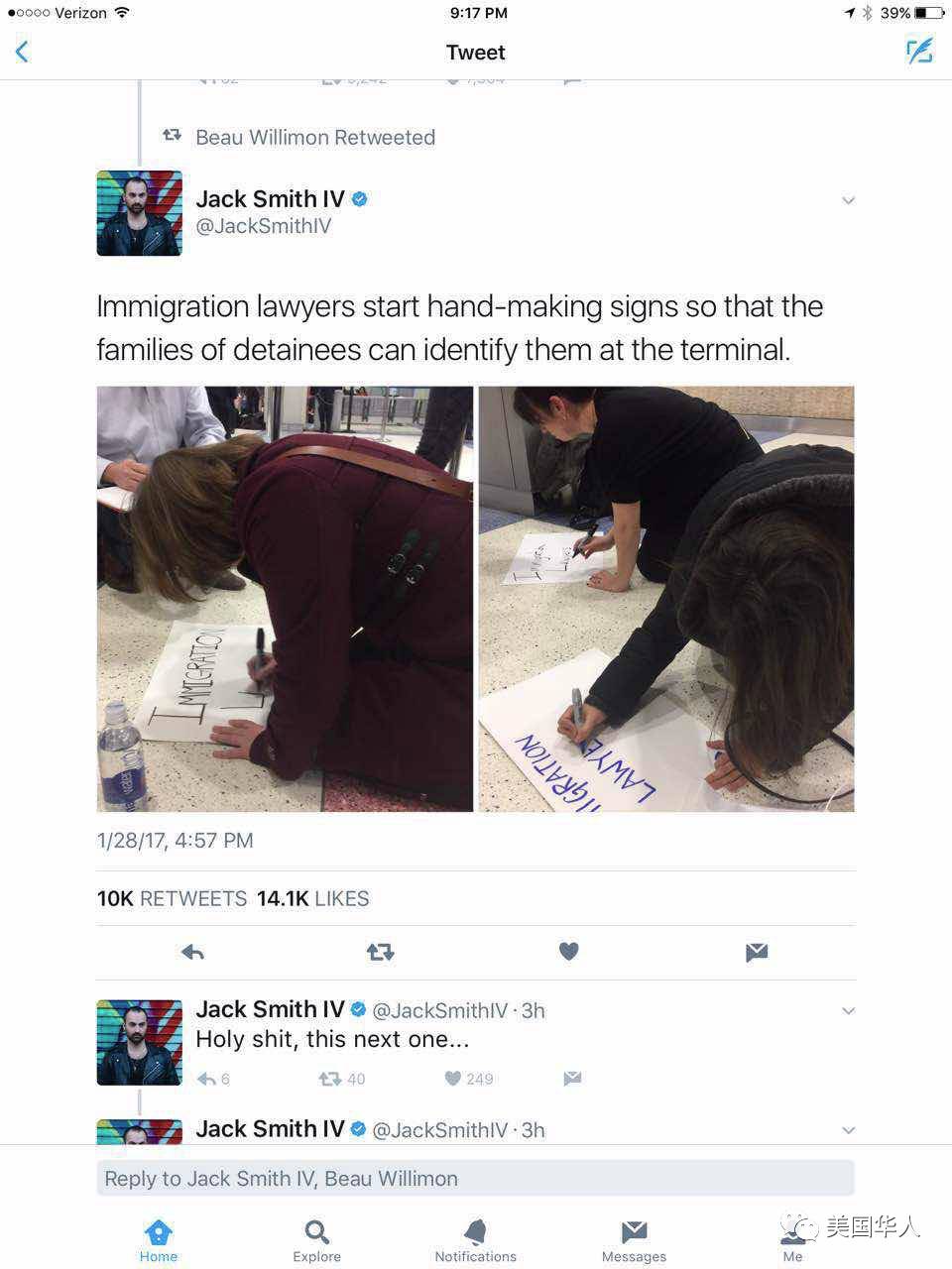 紐約JFK機場4號航站樓已經聚集大批民眾示威,抗議行政令將合法移民阻擋在海關外。更有移民律師現場手寫告示牌亮明身份提供幫助。