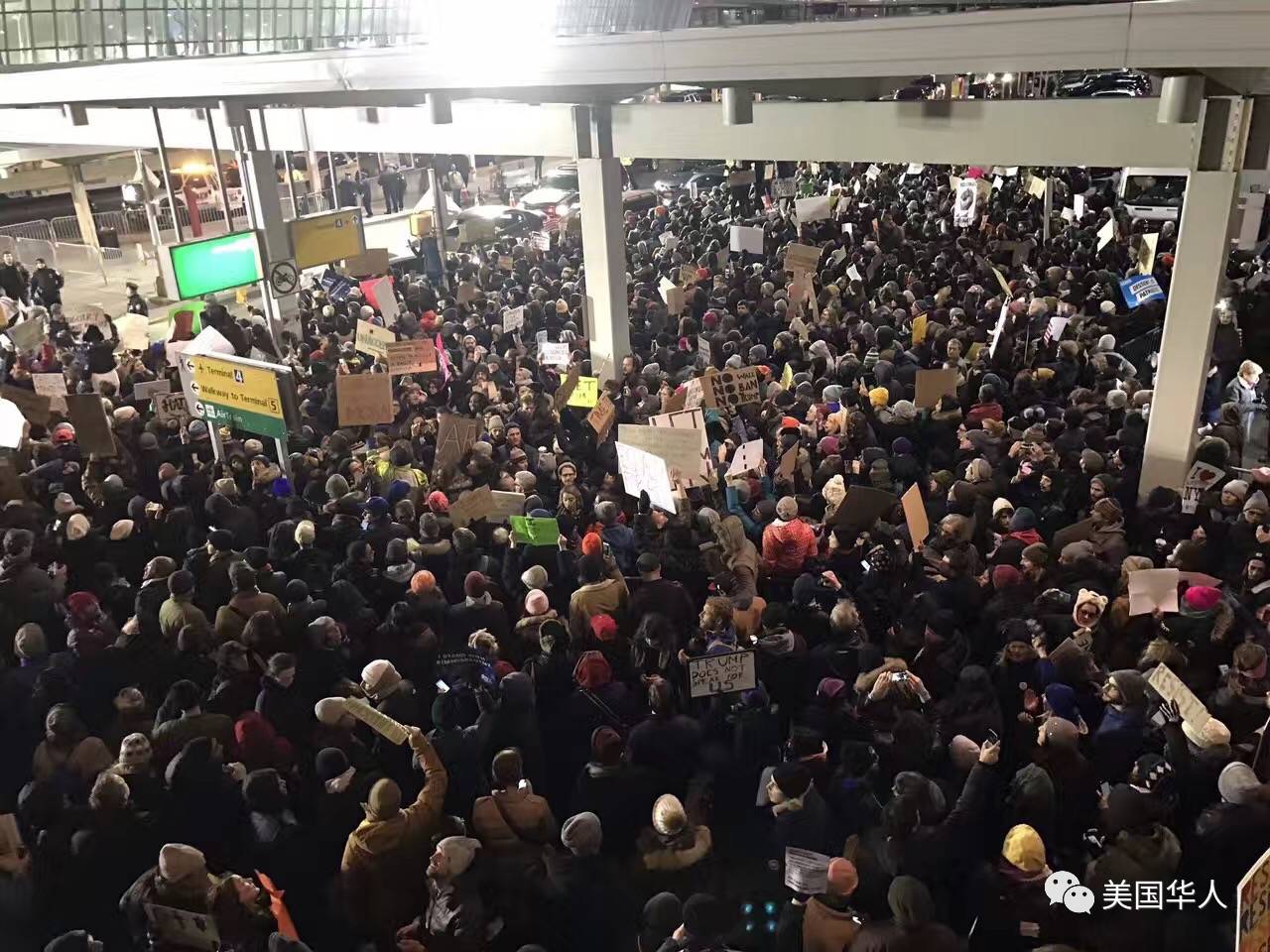 在推特上#MuslimBan迅速成為最熱門的話題,有報道稱有些綠卡持有者被戴上手銬,被扣押,被審問。很多人滯留機場,還有一些在母國直接被拒絕登上赴美飛機。
