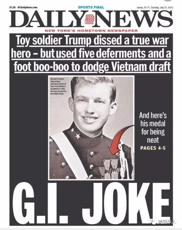 媒體也總喜歡以此來嘲笑川普,在越戰那幾年,川普可以參加各種體育比賽,卻四次逃過上越南前線,給出的理由是他生了“骨刺”。