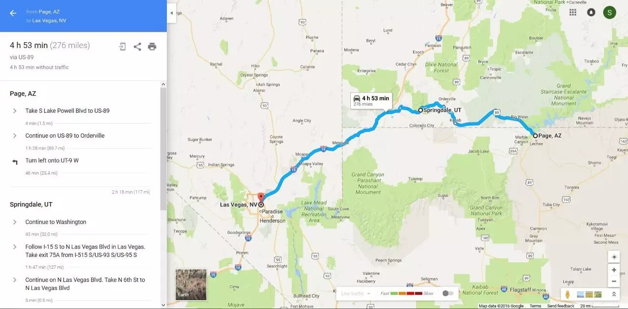 如果你有一整天時間,可以考慮小拐一下去錫安國家公園,不過一定要早點從佩吉出發,如果能提前一晚住到卡納布(Kanab, UT),自然在時間上會更加充裕。