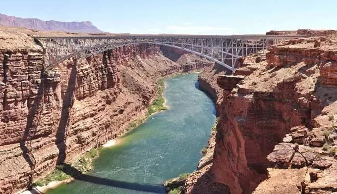 其中,大理石峽穀是科羅拉多河在大峽穀上遊的一段比較狹窄的峽穀,可以停車拍照,在大鐵橋上散個步。紅崖則是一段綿長的高地,氣勢磅礴,可以一路車覽過去(大名鼎鼎的波浪穀就在這紅崖之上)。