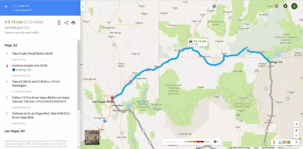 路線四:US-89 -> US-89A -> AZ-389 -> UT-59 -> I-15