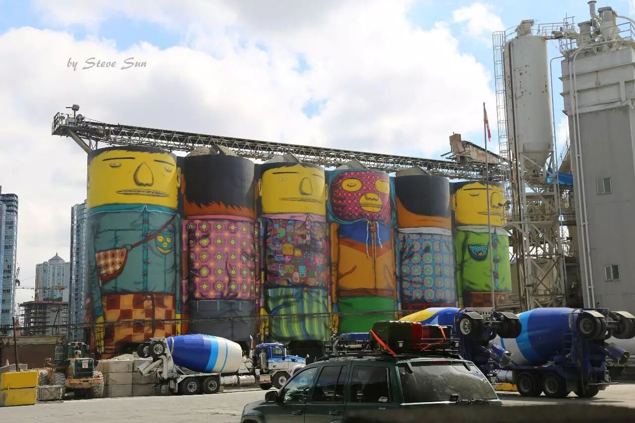 巴西藝術家為水泥廠創作的卡通巨人壁畫