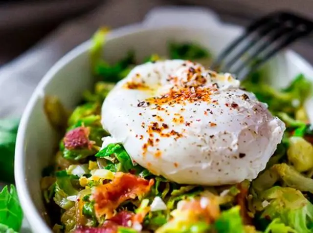 Tips :可不要小瞧兩勺熱水,它會讓煎出的雞蛋外形完好,蛋黃將近凝固。經過高溫燜煮後的雞蛋鮮嫩美味。