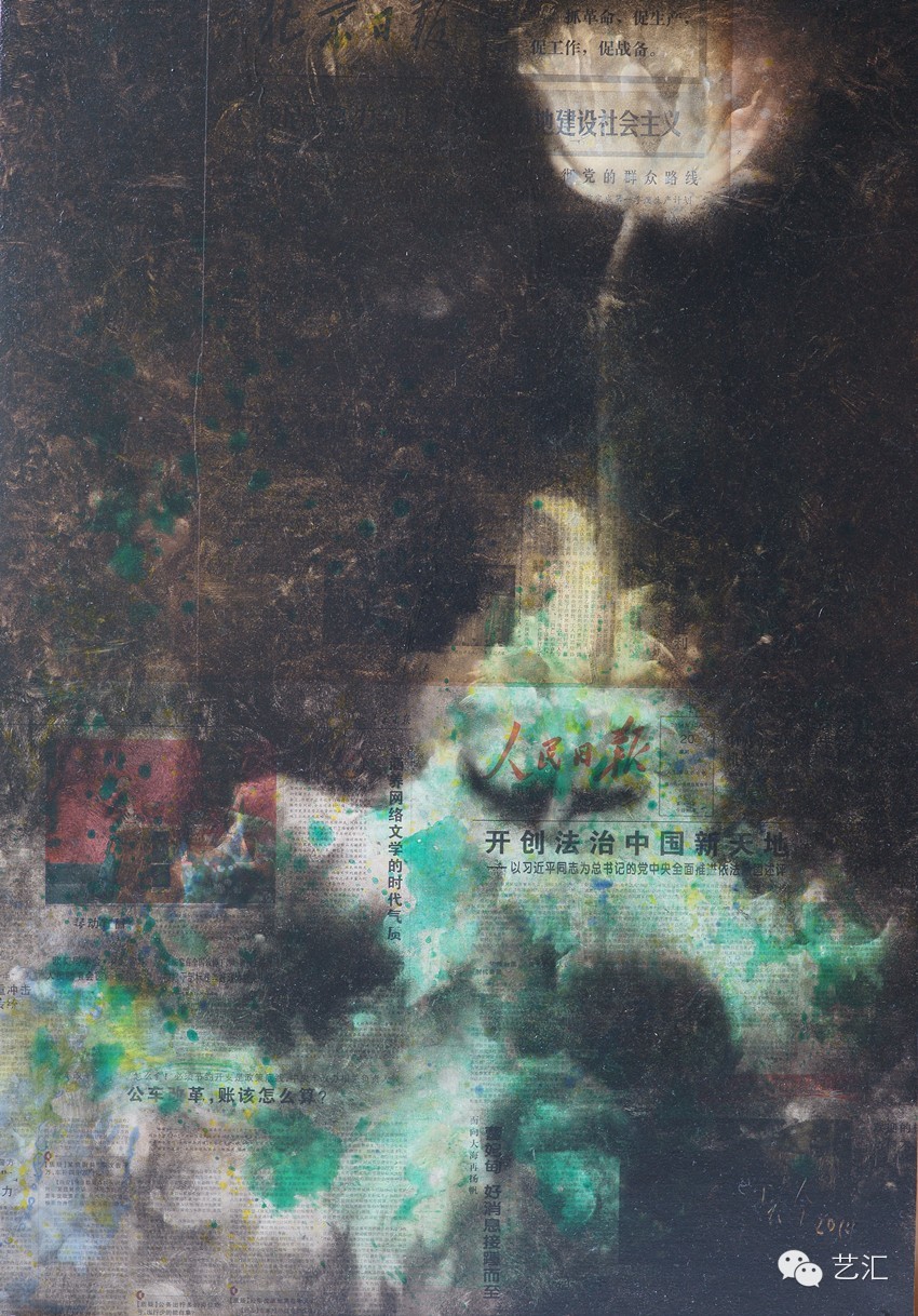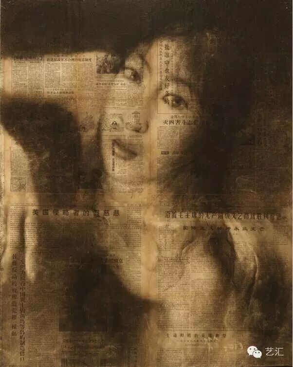 對新材料的尋找和發現是後古典時期藝術發展非常重要的一件事。我的這些作品的想法始於2012年,落實到畫麵上是在2013年。報紙作為存在了上百年的紙質傳媒,其內容的更新速度雖趕不上互聯網,但落實到紙上形成白紙黑字,卻不是點一下刪除就能刪掉的。我們看一百多年前的報紙,仿佛當年的血雨腥風刀光劍影就在眼前。曆史容不得賴賬和歪曲,對事實的記錄報紙無疑起了巨大作用,當然,這要建立在它講真話的前提下。但即使它滿嘴胡言大放厥詞,我們不也反過來知道了他是個謊言代替真理的年代嗎! 這些作品有這樣幾個係列:城市風景,現代人物,礦泉水瓶子,酒杯,以及書和花。