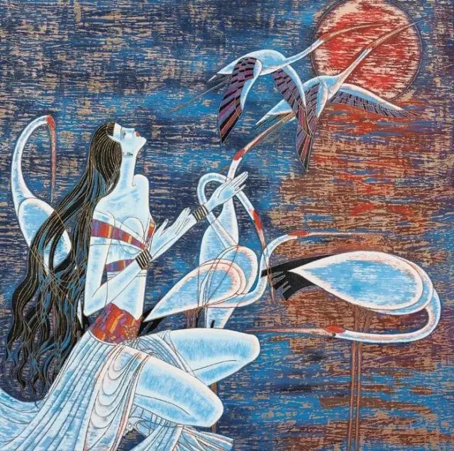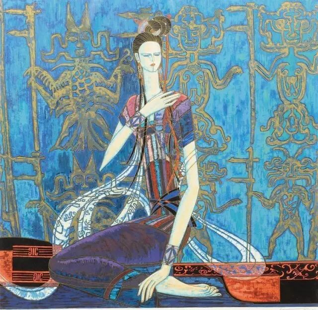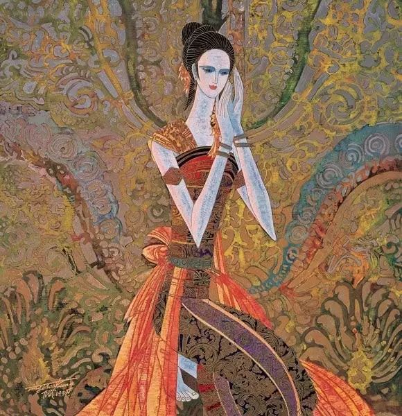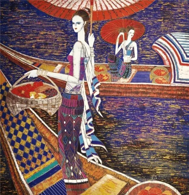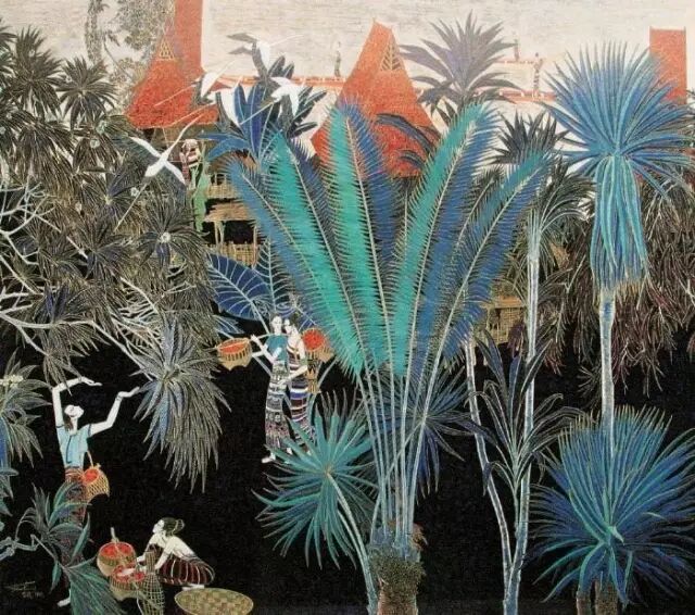 繪畫藝術特征:一是綺麗的風光民情。二是細勁的鐵線描繪。三是誇張的變形手法。四是絢麗的色彩效果。