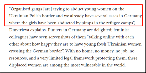 事實也的確如此,發生強奸和拐賣烏克蘭女性難民的事情不光是波蘭有,境內有烏克蘭難民的其他國家也普遍存在。