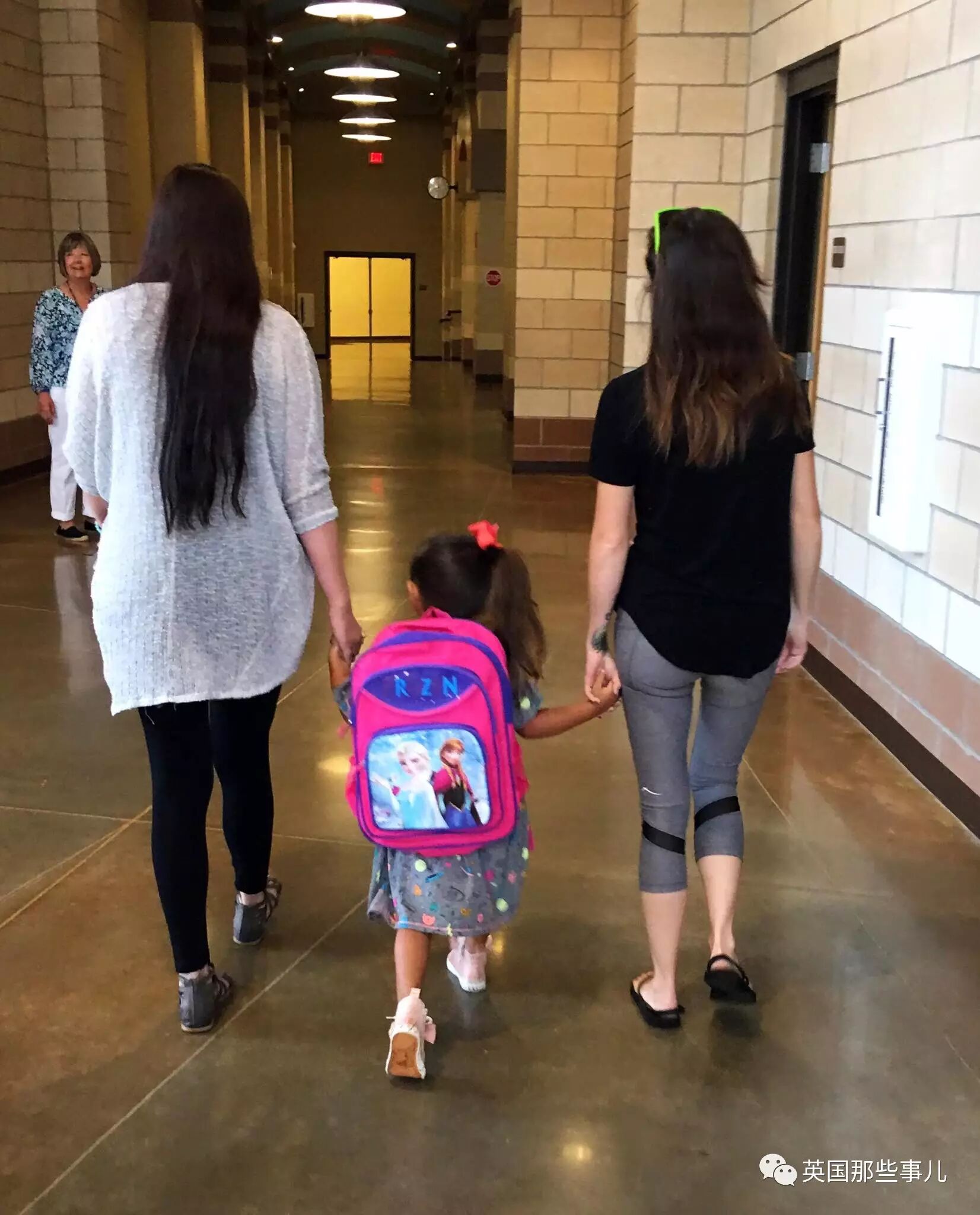 這張照片,就是我們兩個媽媽(Hayley和前任的現任)一起領著我們的女兒去上學。
