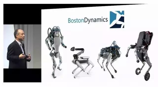 軟銀收購了穀歌Alphabet旗下的美國驅動機器人公司Boston Dynamics。正在開發的狗型機器人“BigDog”,它在道路不平整的條件下仍然可以運送約150公斤重的行李。正在開發的外星人機器人“Atlas”可以在行走時避開障礙物。