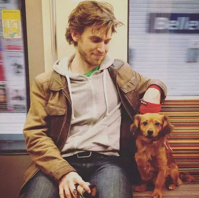 一看就知道是個超貼心的暖男。俺來和你一起遛狗好嗎??
