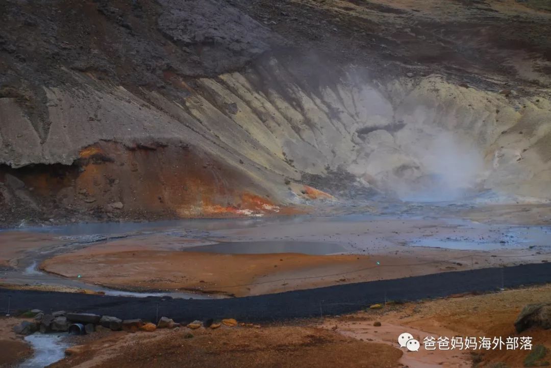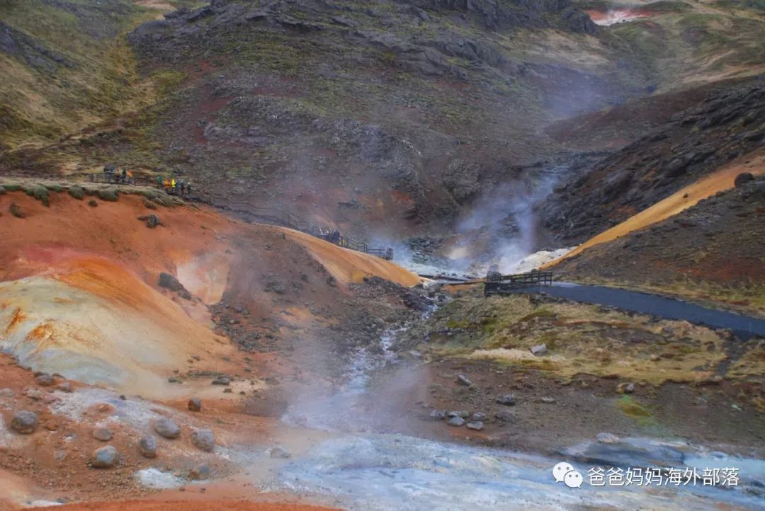 因為地熱的關係,這裏的土壤呈線明亮的黃色、紅色和綠色色調,空氣中迷漫著硫磺味,還有灰色的泥江源源不斷地冒著泡泡,另一頭滾燙的溫泉水匯流成河。