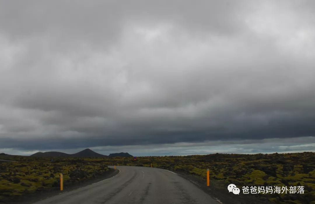 第二天前往雷克雅未克以南,又一次遭遇大雨,放眼望去黑壓壓的熔岩地荒野,伴著空氣中的硫磺味,感覺仿佛掉進死火山堆裏。峰回路轉的時候,看到隱約的天邊,恍惚中有一種會被飛碟吸走的感覺。