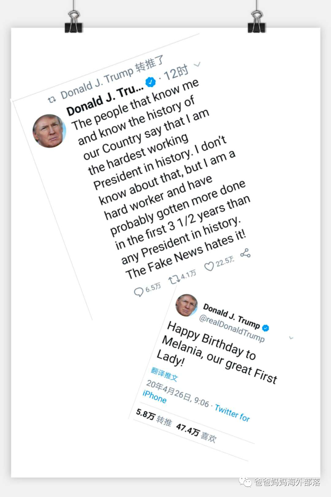川總統顯然不是說封口就封口的“好乖乖”,周末兩天他轉戰推特,口誅筆伐,一會兒表揚與自我表揚,誇自己是美國最勤奮的總統;一會兒痛批“假新聞”,還揚言“拿到諾貝爾獎的記者們把獎杯退回來”,殊不知諾貝爾沒有新聞獎,新聞界最高榮譽是普利策獎。在口水戰的同時,川大爺也盡顯男人的溫柔與丈夫的體貼,今天有一則帖文是獻給他夫人的,川總統寫道:生日快樂,偉大的美國第一夫人!