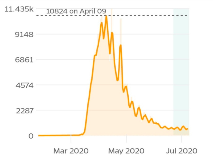 從曲線可以看到紐約州早期新冠病例直線上升,從病毒爆發到目前病例達到自爆發以來最低的病例,這是一個怎樣的過程?在病毒快速傳播的過程,大量的測試,隔離,戴口罩,社交距離都是齊頭並舉的措施。