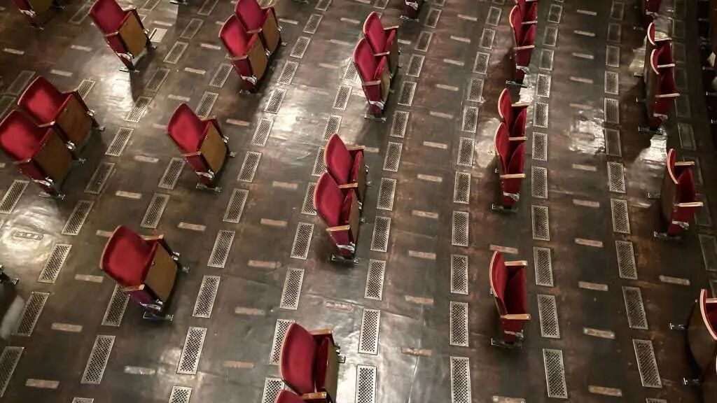 集團從700個座位中刪除了500個,以準備按照德國的社會疏遠政策重新開放。劇院的座位約有70%已被拆除,第二排被清空,其餘座位單獨或成對布置。