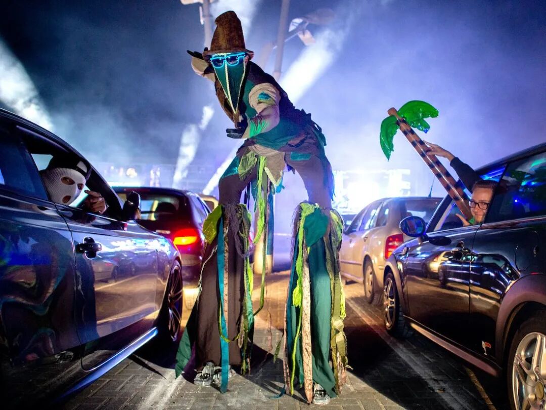 在德國,駕車入場已成為人們在安全距離內欣賞電影、喜劇節目和音樂會的一種流行方式。在一個可以容納250輛汽車,將近500人的停車場,一家迪斯科舞廳采用了安全設計,舉辦了一場“迪斯科之夜”。賓客將車上的廣播電台調入到DJ的現場表演頻率,同時燈光,煙霧和舞者淹沒整個停車場,讓賓客得到視覺的享受。