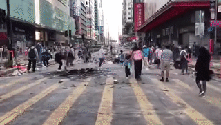 有報道稱,事發時,他似乎在清理路麵的磚頭。