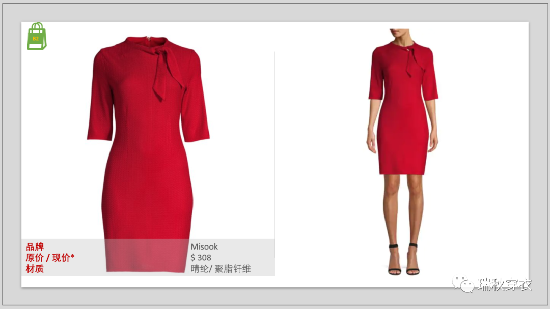 我挑的第一條大紅色連衣裙是職業裝很出名的Elie Tahari - 算職業裝裏高大上的。這條外套型的連衣裙顏色,款式我都覺得很完美,(完美適應中年阿姨)適合讀者群裏的“白骨精”們。這條裙子在尼曼網上賣 (可寄中國),現在隻剩US16號,但可以添加到等候名單裏。解釋一下 - 尼曼雖然幾周前申請破產,但網上銷售不受影響。