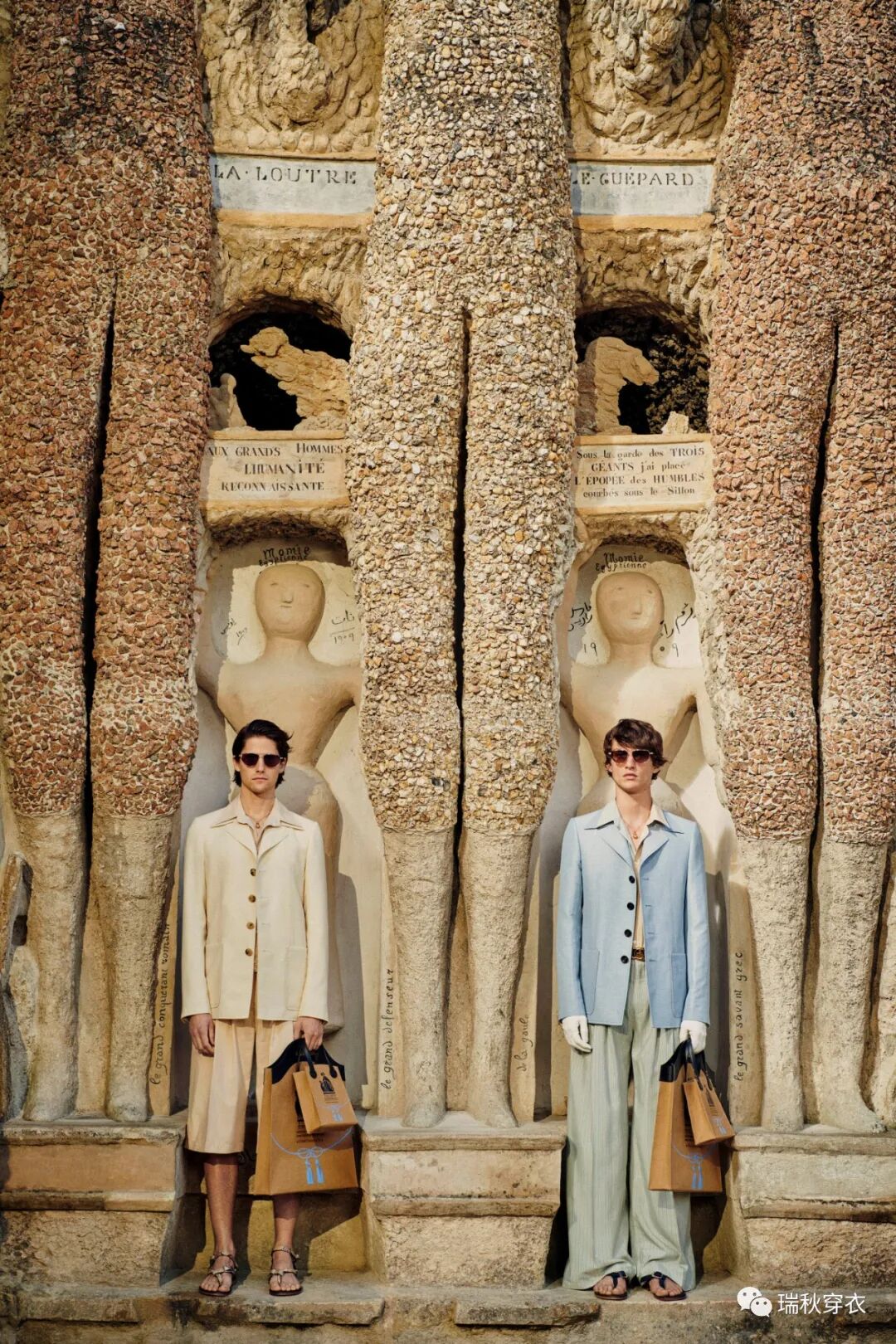 Lanvin2021度假展的拍攝地在法國裏昂的Le Palais Ideal。博主是第一次聽說,一查之下,被它背後的故事完全迷住,忍不住羅嗦兩句 - 用一句俗話講,這是個見證奇跡的地方,是二十世紀,法國一名鄉村郵遞員Ferdinand Cheval曆時33年獨自建成。Ferdinand 出生於農家,13歲輟學,沒有任何建築,藝術,設計的培訓。在他43歲那年,一天Ferdinand走在路上差點被一塊石頭絆倒。他回身去看個究竟,發現了一塊砂岩,他撿起這塊石頭,覺得這塊岩石很美。四下看看後,他發現了更多同樣美妙的石塊。他自述說“既然大自然願意雕刻,那我來做泥瓦工和建築師吧” (Since nature is willing to do the sculpture, I will do the masonry and the architecture)。自此33年不間斷,獨自一人手工創造出這個城堡。