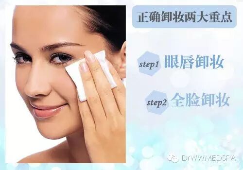 4、卸妝要仔細:妝卸不乾淨也是會容易導致斑點的,特別是眼妝,彩妝如果殘留就會堵塞毛孔還有產生斑點。卸妝時也可使用卸妝的產品在斑點多的地方敷一下,有助淡化斑點,但是不太建議用卸妝油敷的。