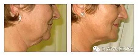 攻防策略之三:醫美微整幹預治療。脖頸皺紋出現的早期,可以考慮電波拉皮或鐳射緊膚。當頸部衰老嚴重時,如出現所謂的「火雞脖」、肥頸、雙下巴,則需要啓用創傷性抽脂術或無創性溶脂術。最近,美國FDA批準脫氧膽酸(商品名KYBELLA)用於治療肥頸。我們的醫美鐳射中心將無創溶脂術與電波拉皮相結合,縮頸、減肥、去皺、緊膚作用融匯一體,效果奇好,屢試屢爽,顧客的滿意程度幾近100%!