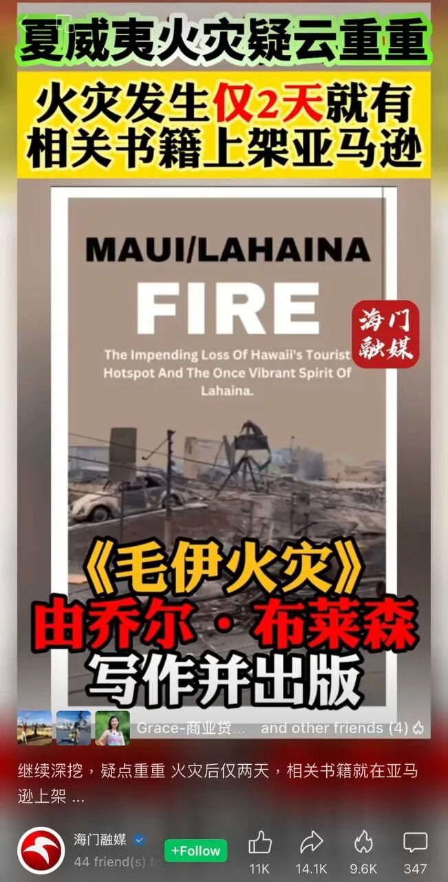至於昨天辟謠的夏威夷大火發生兩天就有書出版的事,其實主流媒體一樣有報道。這個書第一版是8月10日上架,現在美國任何人自己要出書掛到亞馬遜賣非常容易,不少還是用ChatGPT這類AI工具寫出來的,通過人工或者計算機智能幾天內弄出一本十幾頁幾十頁的書實在不是難事。