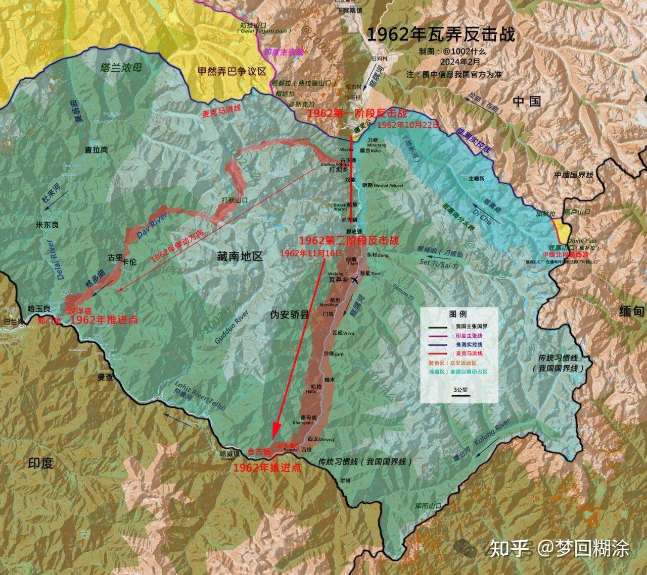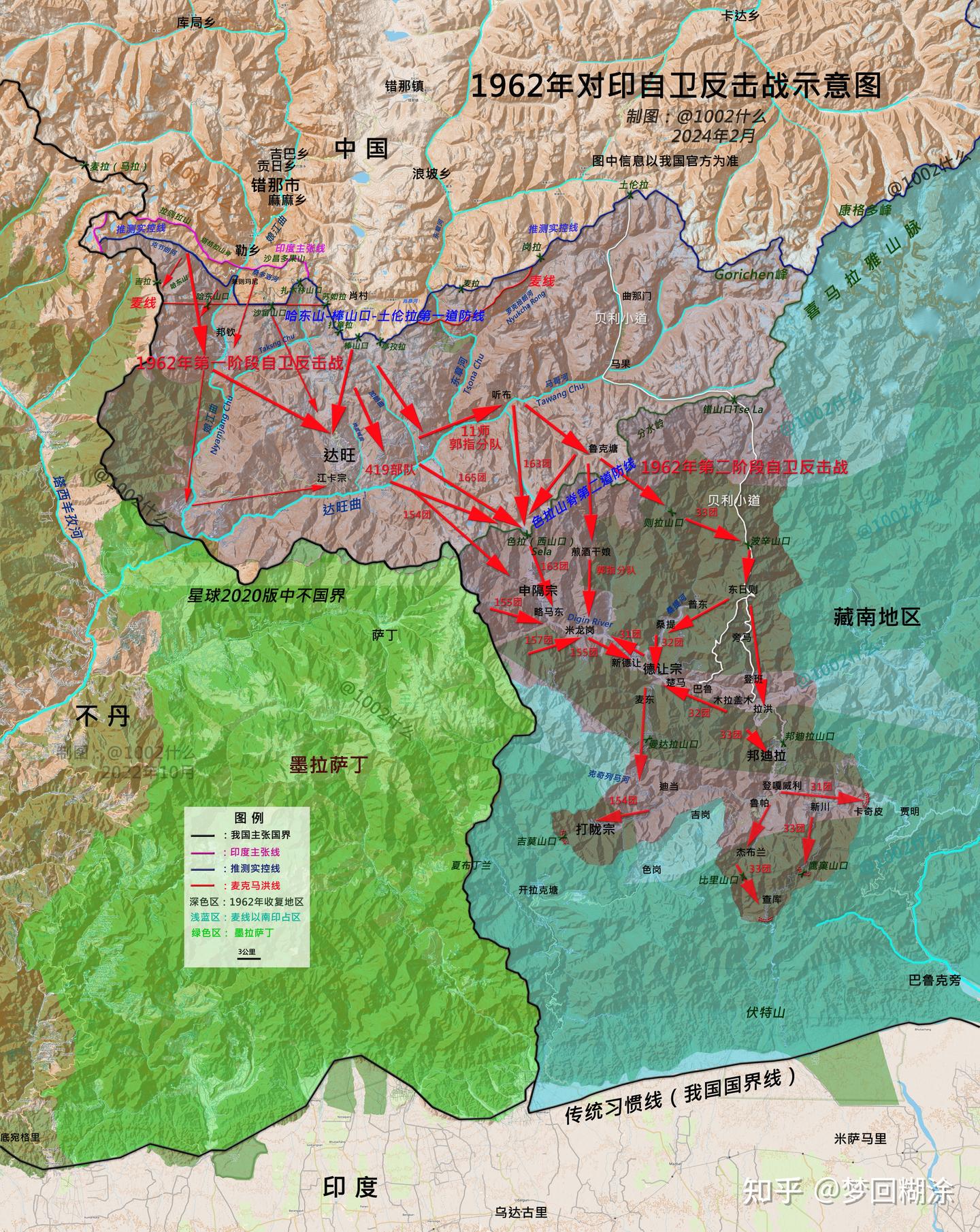 1962年,我們的戰果是越過1959實控線(約等於麥線)深入藏南打擊了印侵略軍。之後退回該線,並後撤20公裏。同樣的,撤的是大軍,留下了檢查站。這條實控線基本延續守護至今,僅僅在1987年,印軍越過麥線進入克節朗,兩軍分割了該地;我軍越過朗久,進駐形瓊普張。以及新世紀印軍越過東章地區和甲曲俄地區的實控線(麥線)設置哨所。雙方仍有多個大的交叉活動區。
