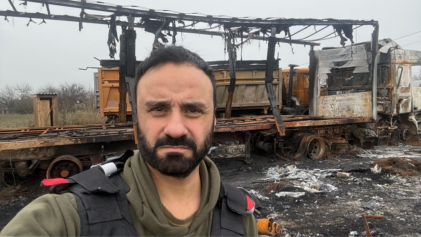 (圖:我身後是頓巴斯的公路旁一輛被俄軍(中國)製造無人機摧毀的烏克蘭卡車版權所有,Giorgio Provinciali)