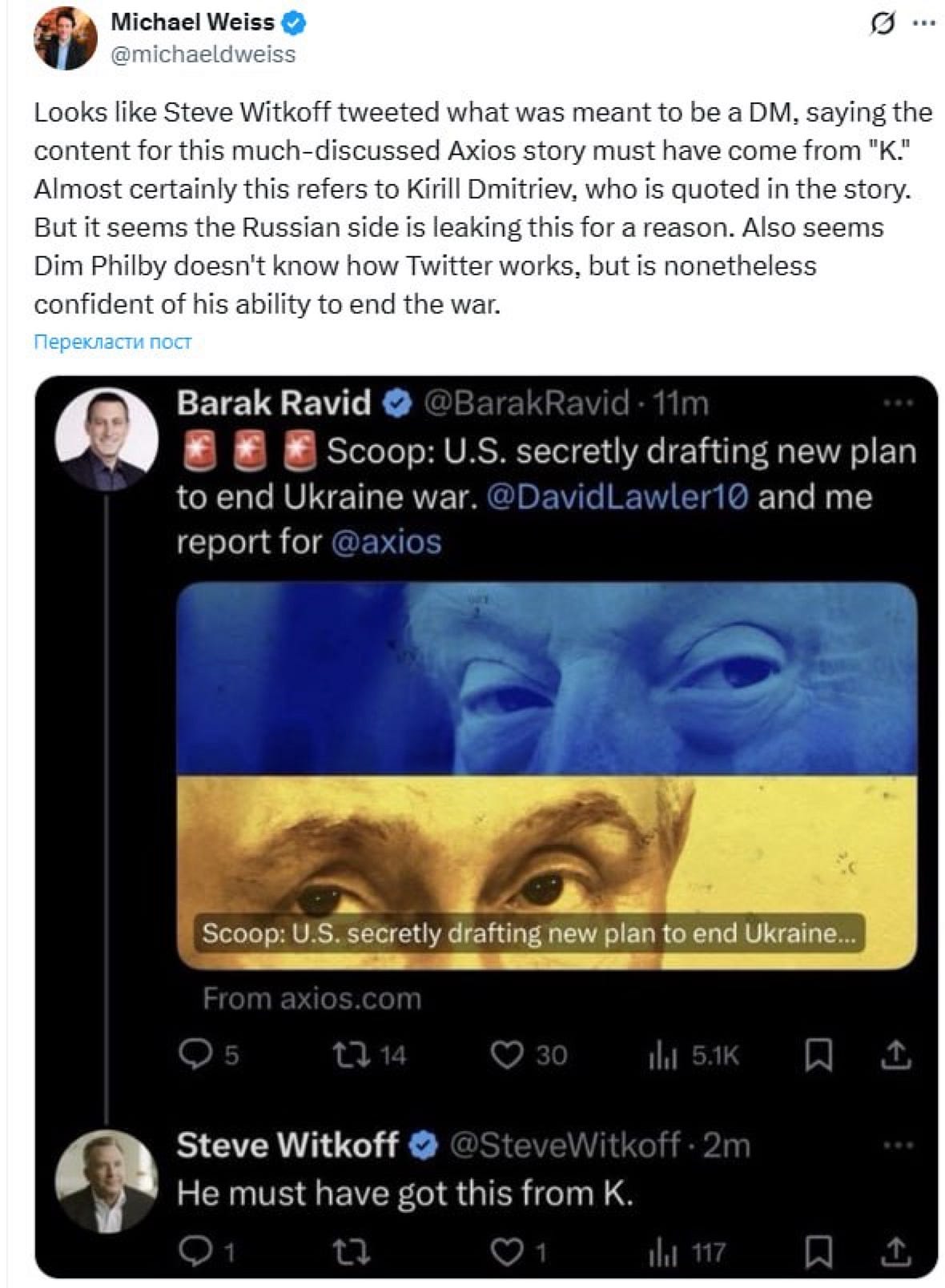 所以,無論最後是誰摘掉麵具,將與俄方達成的妄想投降計劃稱為和平計劃,每一個自以為可以決定這些人命運的人都應該進行一些靈魂的反思。如果他們還有靈魂的話。