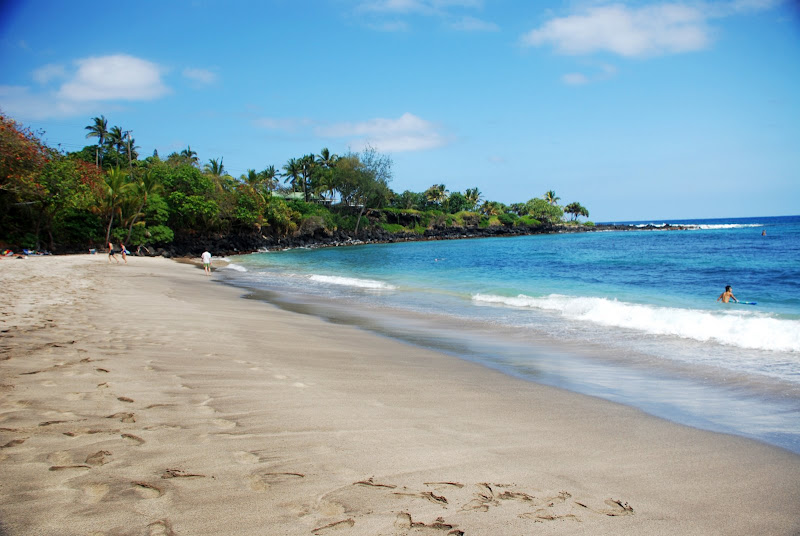 HamoaBeach是過了360公路從31號公路出現的第二個海灘。值得一提的是這個beach的沙子是我們在夏威夷見過最細致的。。。光腳站在沙灘上讓浪尾劃過之後,遺留在腳趾縫隙裏的沙子與其說是顆粒不如說是粉塵,感覺就像睡著之後有人輕輕抽走蓋在身上的絲綢。