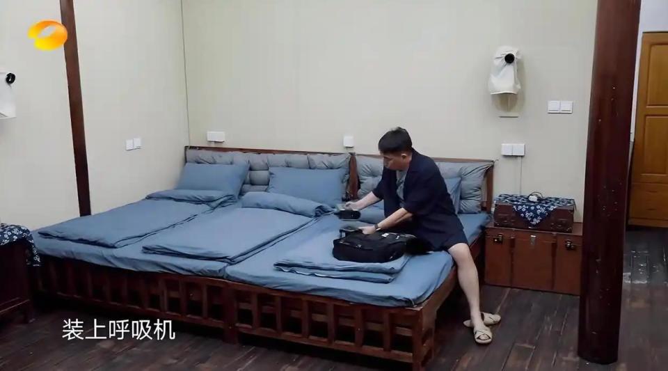 第一期晚上,鏡頭掃到黃磊的房間,他正坐在床邊調呼吸機的帶子,手指動作挺熟練的,一看就不是剛用的新手。何炅路過門口時還特意問了句“今晚呼吸順不順”,他抬頭笑了笑說“還行,跟家裏沒差”。