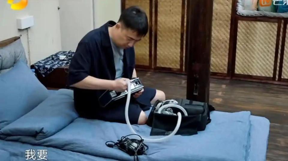 後來查了查才知道,他戴這個應該是應對睡眠呼吸暫停——就是睡覺的時候氣道可能會堵,得靠機器幫著通氣。這種情況在中老年人裏挺常見的,但真把治療設備搬到綜藝上的明星,我印象裏還真沒幾個。