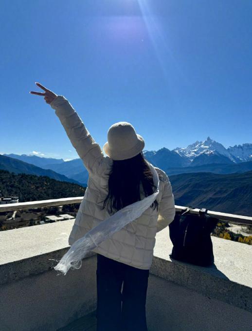 雖然她沒配啥煽情文案,但照片裏的狀態藏不住 —— 穿著輕便外套站在觀景台,身後是雲霧繚繞的雪山,完全沒有網傳 “情場失意”