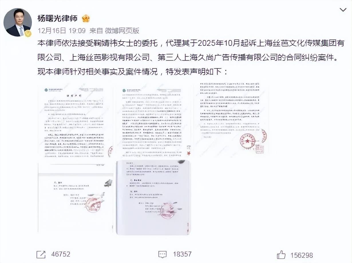 鞠婧禕方麵駁斥1.39億含工作室運營成本,實際分成僅15%-20%(行業頭部通常30%-50%),並指控絲芭通過"雙重合同"隱瞞真實收入。