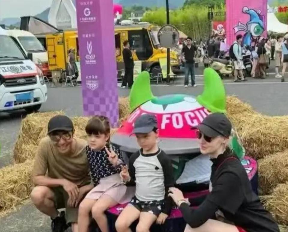 G63的車標上,折射出一道刺眼的光斑。撒貝寧把兩個孩子的書包塞進後備箱時,身旁那位金發碧眼的女子正蹲下身給兒子整理衣領。圍觀者舉起手機,鏡頭卻意外捕捉到另一個身影——一位穿著