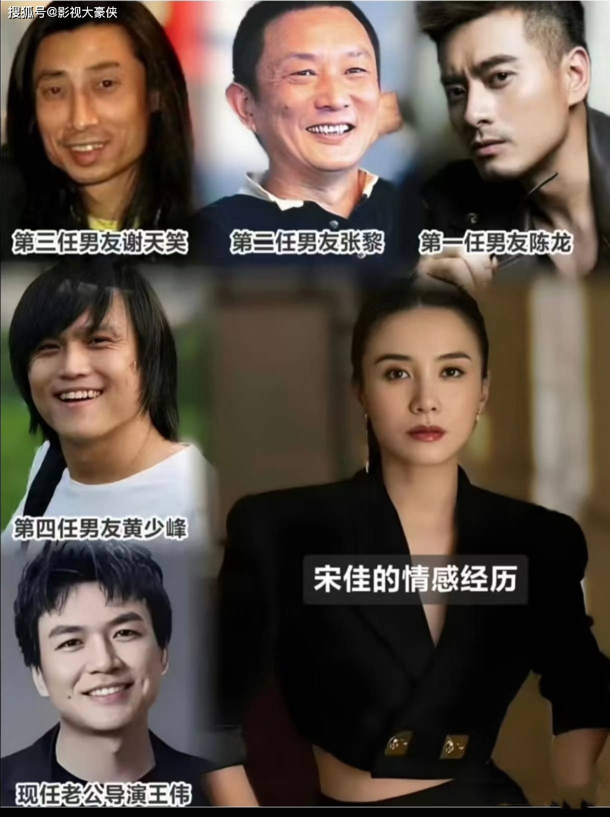 宋佳也是圈內愛和導演談戀愛的女演員,四任對象中,2個就是導演,最困苦的時候就是和陳龍在一起的時候,大三兩人因戲生情,後來宋佳想去北京發展,兩人和平分手,剛去北京一年宋佳一點戲都沒有,後來她遇到了剛和劉蓓離婚的導演張黎,對方帶著《中國往事》找到了宋佳,張黎那時候已經是白玉蘭最佳電視劇導演獎項獲得者,和劉琳、劉蓓、宋佳等眾多女星都有感情糾葛,第一任就相差17歲,第二任相差10歲,第三任女友就是小23歲的宋佳,當時她被屏幕中穿著肚兜的性感女人迷住,一來二去,兩人就戀愛了,但這段戀情並未持續太久,很快分手。