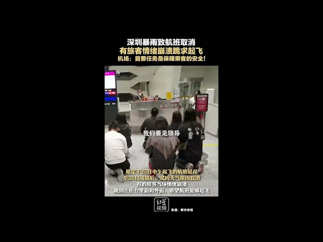 奇觀:因暴雨航班取消 旅客竟跪地求飛 網民看不下去了