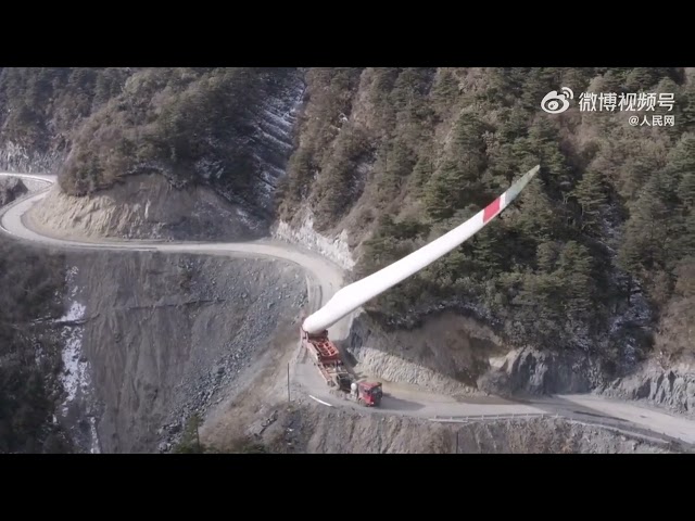 驚險連連!75米“大風車”葉片走懸崖過險彎視頻火了